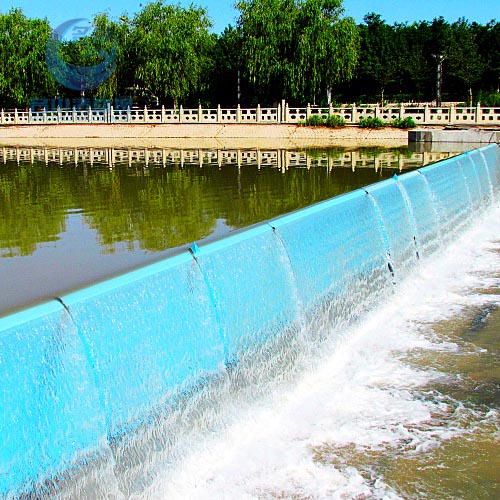 橡膠壩使用壽命短(橡膠壩采用的是再生橡膠原料,壩袋易老化,容易被上游漂浮物或尖銳物損壞,從而降低使用壽命);運行管理難度大(洪水過后一旦壩面淤積較厚,要求人工清理,否則壩袋不能正常升起蓄水,增加了后期的人工費用)。充水式橡膠壩冬季冰凍容易損壞壩袋,而充氣式橡膠壩不能調(diào)節(jié)壩高。